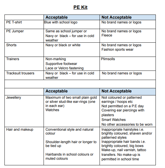 Please note: Whilst we understand that, as the school academic year comes to an end, your child may grow out of their school shoes, we still wish to maintain standards and the school uniform rules still apply. Trainers may be worn with school PE kit.