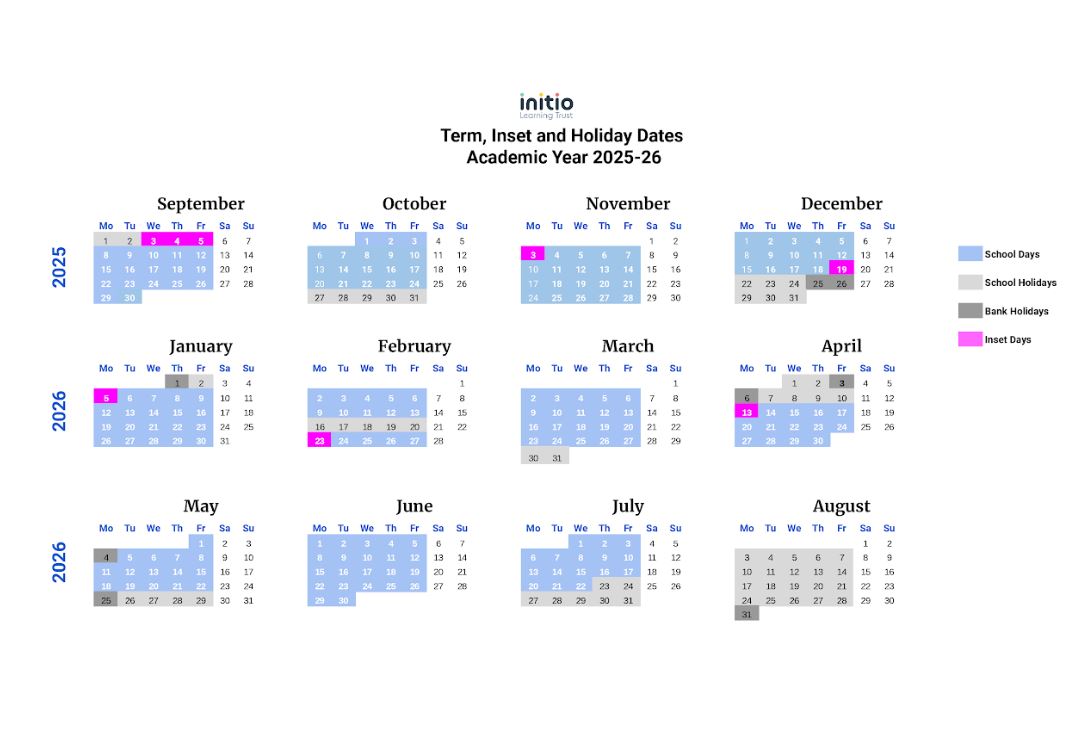 Initio Learning Trust sets its term dates including inset/training dates as soon as possible as we appreciate that parents/carers need to plan ahead.